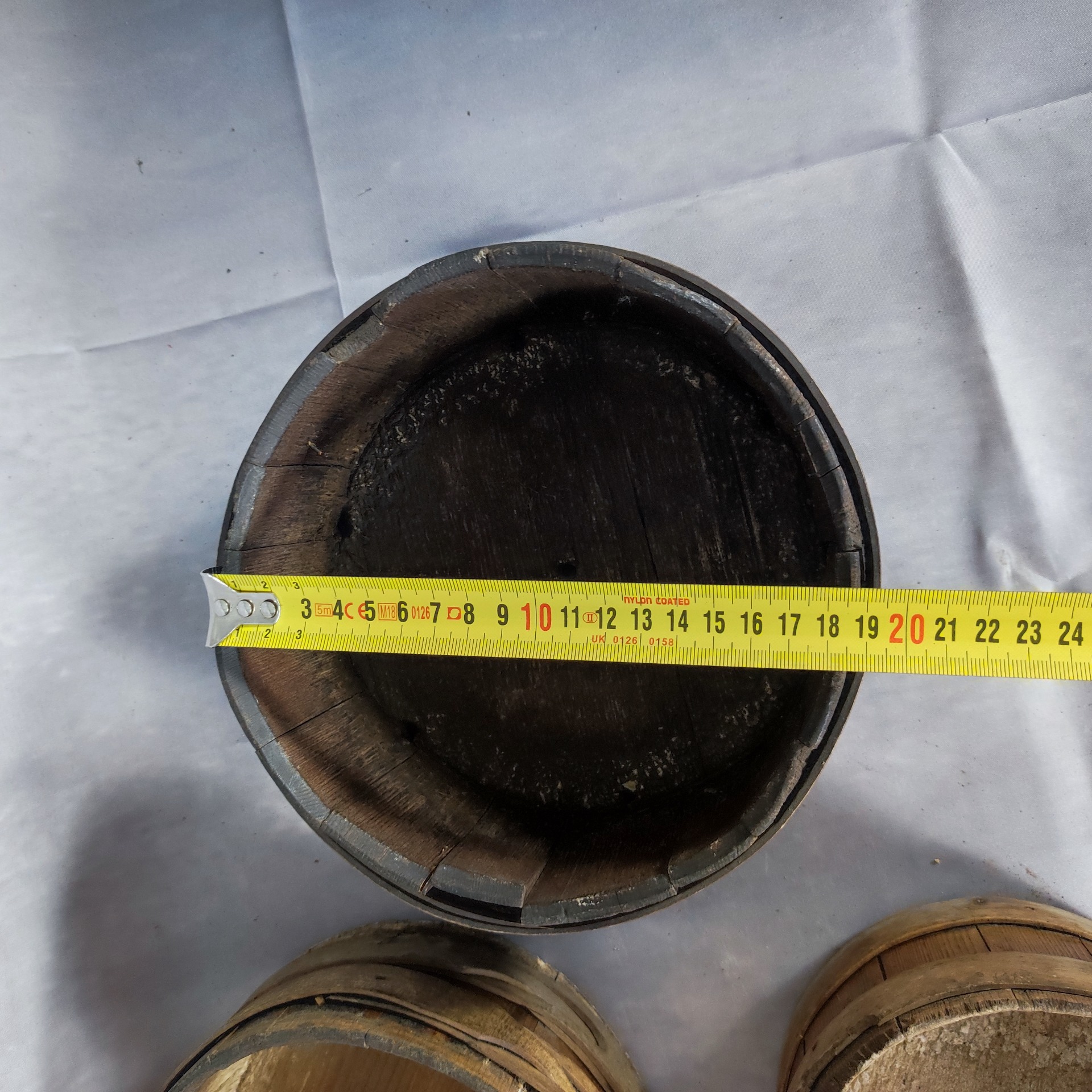 Dřevo po letech suché, místy popraskané, s rezavými obručemi a přirozenou patinou. Každá jiná, ale všechny poctivé. Ideální do interiéru, chalupy nebo jako dekorace s příběhem.