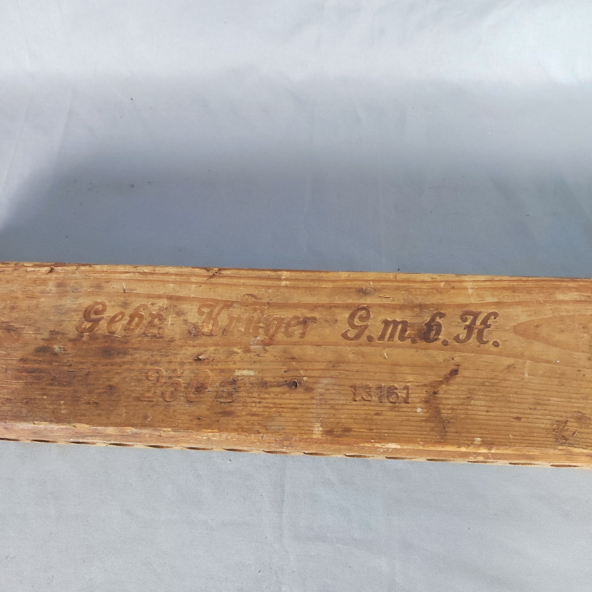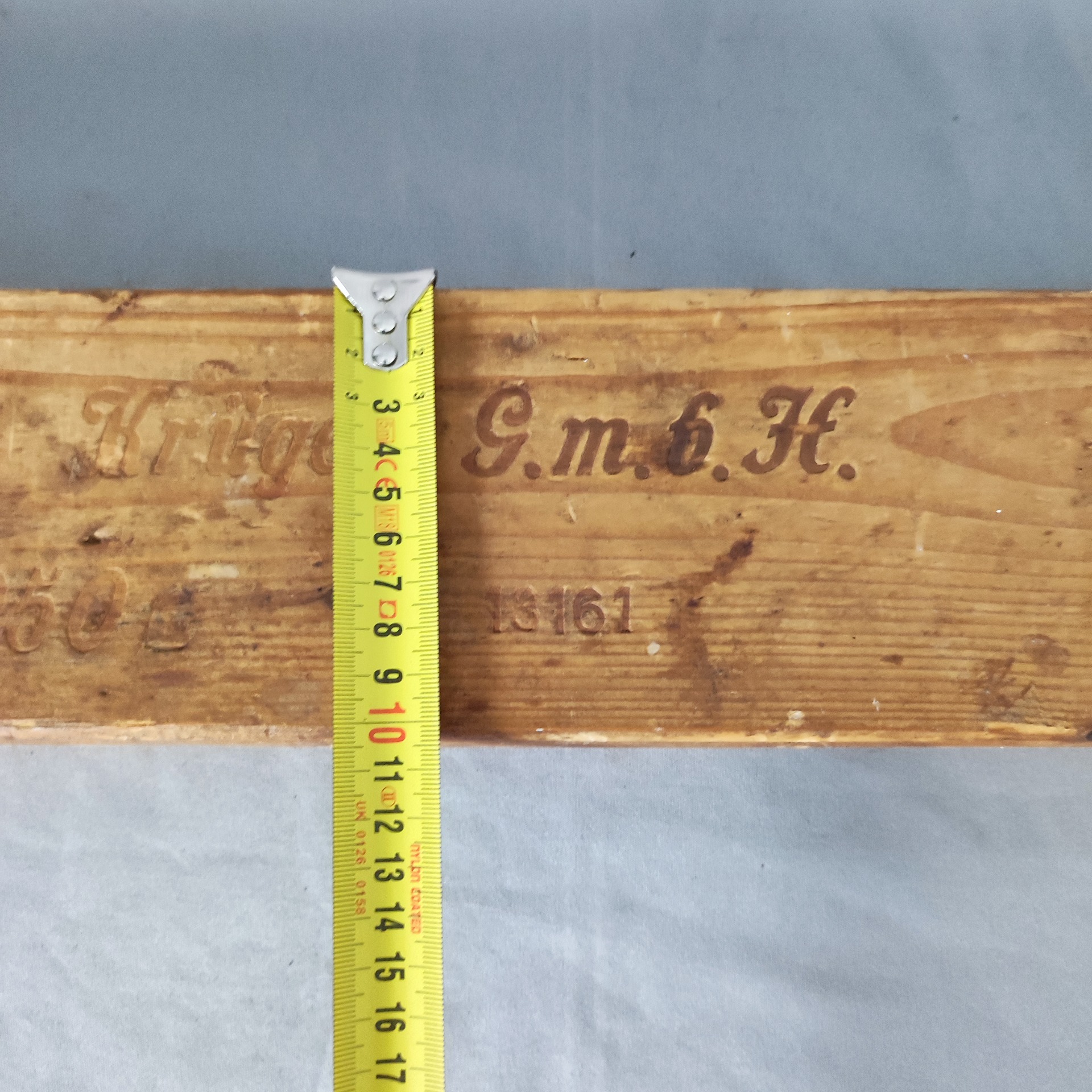 Dřevo je dnes tmavé, nasáklé časem i používáním. Vypálený nápis „Gebr. Krüger G.m.b.H.“ spolu s datací 1911 dává jasně najevo původ i stáří. To není dekorativní rekvizita – to je skutečný pracovní nástroj z počátku 20. století, z doby, kdy se kouřilo pomalu a vyrábělo poctivě.
