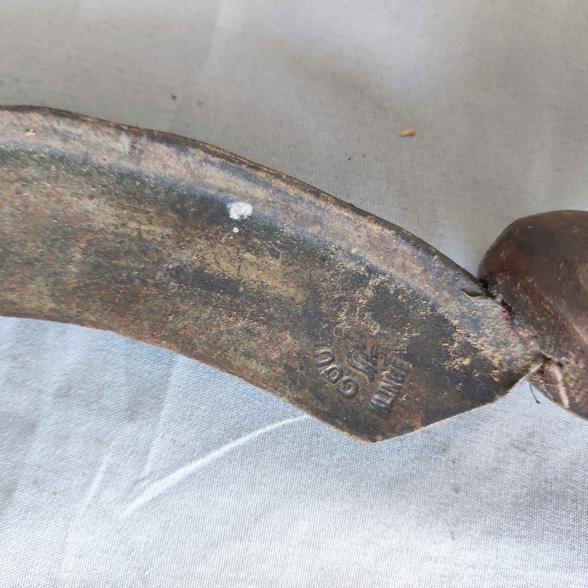 Z jedné z nich pochází i tenhle hákový srp s raznicí GOUX – THIERS, nástroj, který vznikal v době, kdy každý kus nesl podpis svého mistra.
