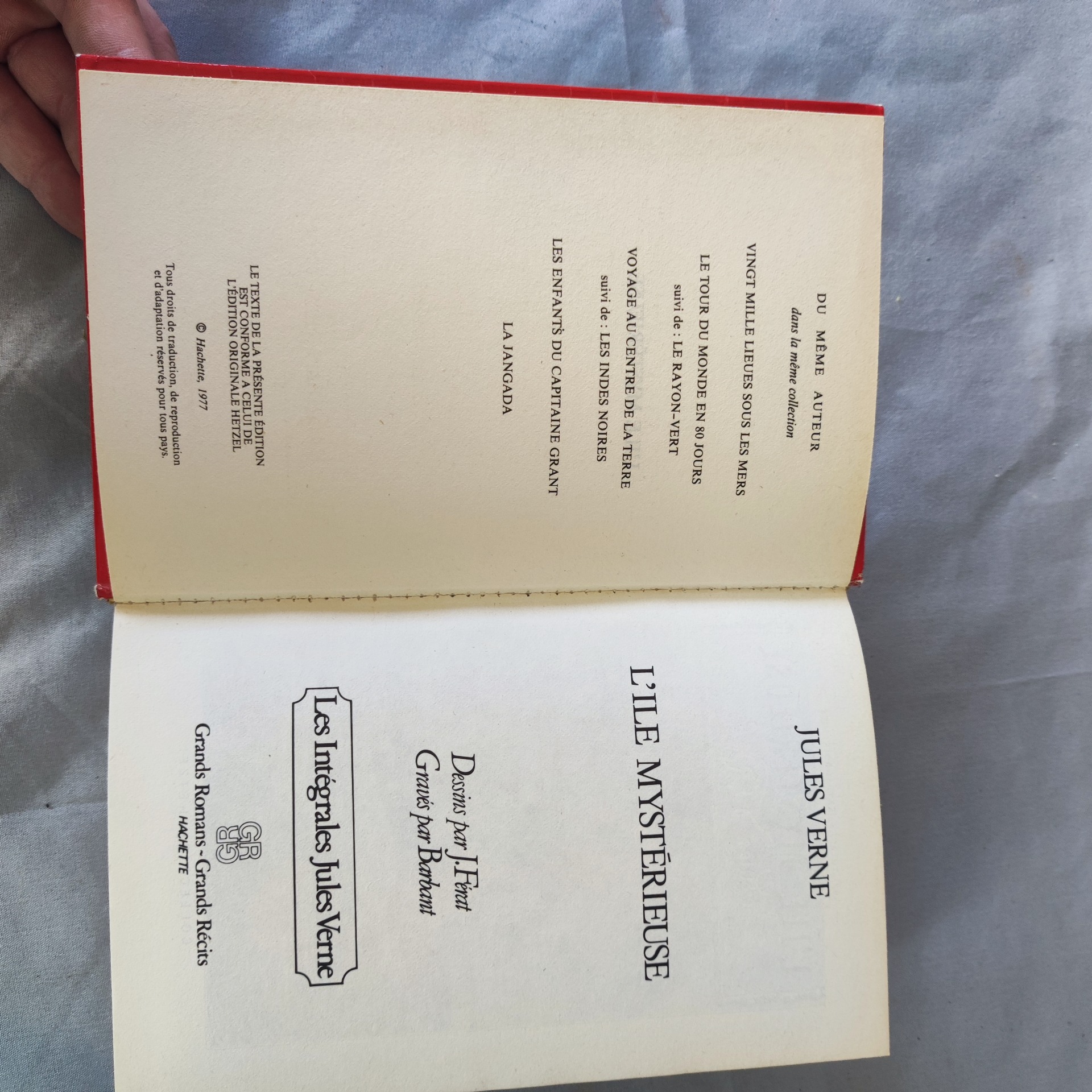 Tento svazek L’Île Mystérieuse vyšel roku 1977 v sérii Les Intégrales Jules Verne, nakladatelství Hachette. Obsahuje původní francouzský text s ilustracemi J. Férata, tištěno na pevný papír, typický pro edici „Grands Romans / Grands Récits“. Je to kniha, která voní mořem, dobrodružstvím a tiskárnou 70. let – ideální kus pro každého, kdo miluje staré francouzské výtisky.