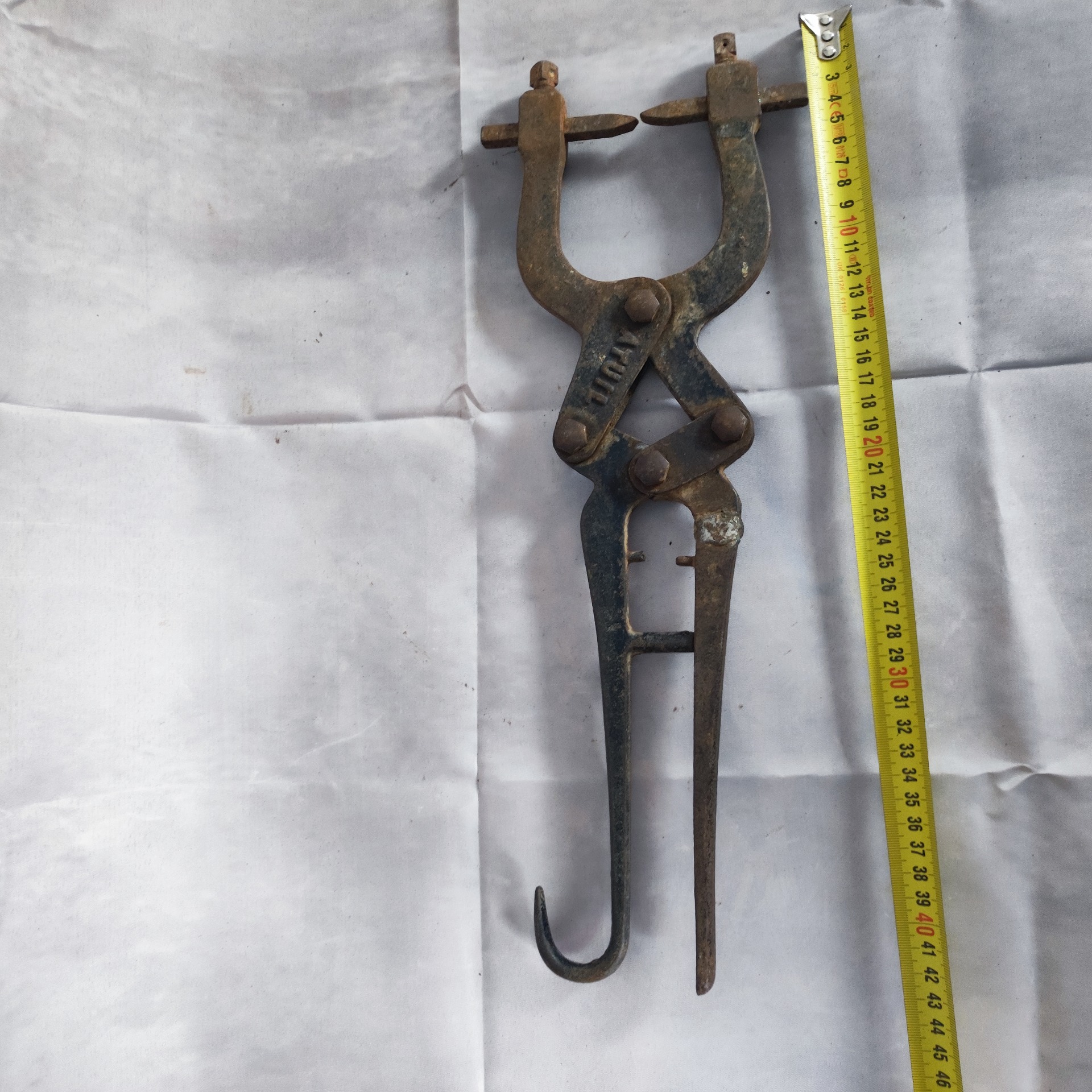Tahle věc vznikla v době, kdy pokrývač lezl po krovech s kapsou hřebíků, ne s akušroubovákem. Kovové kleště s hákem a dvěma čelistmi mu visely u pasu – nástroj, který znal každý, kdo kdy dělal střechu poctivě.