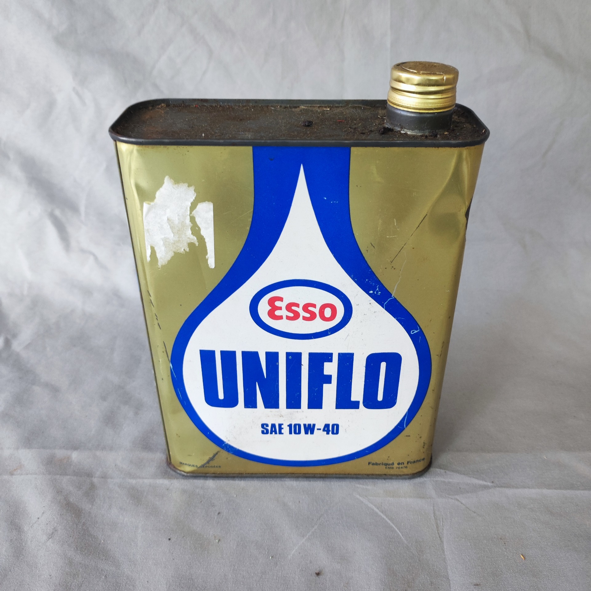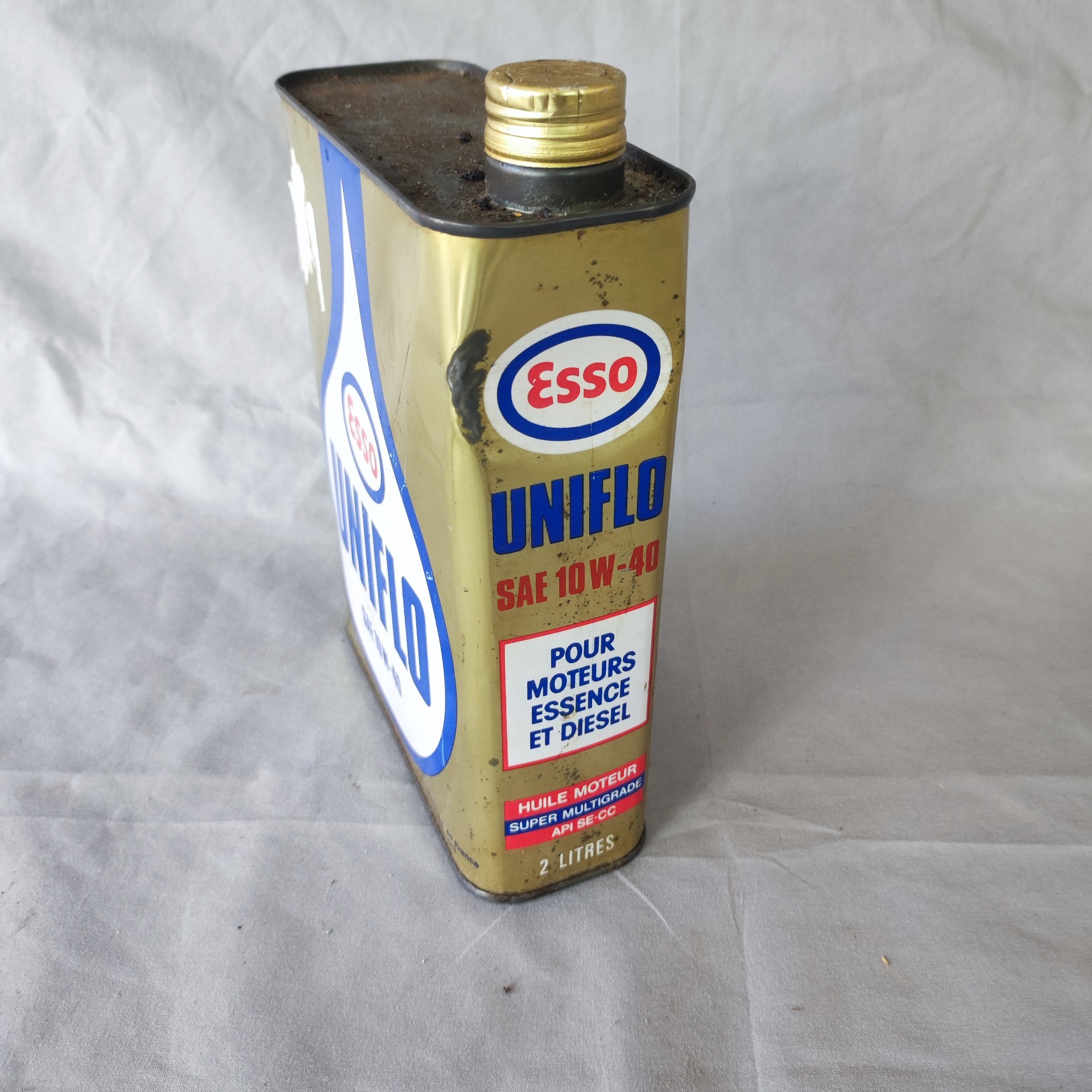Našel jsem ji ve stejné charitě u Saint-Gobain, kde ležela i stará Shellka. Byly tam vedle sebe, zaprášené, unavené, ale pořád hrdé. Tahle má emblém Esso a velkou kapku s nápisem UNIFLO 10W-40 – klasika sedmdesátých let, kdy se o auto pečovalo ručně, ne přes aplikaci.