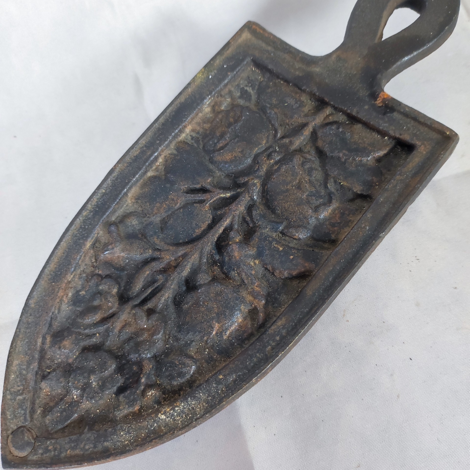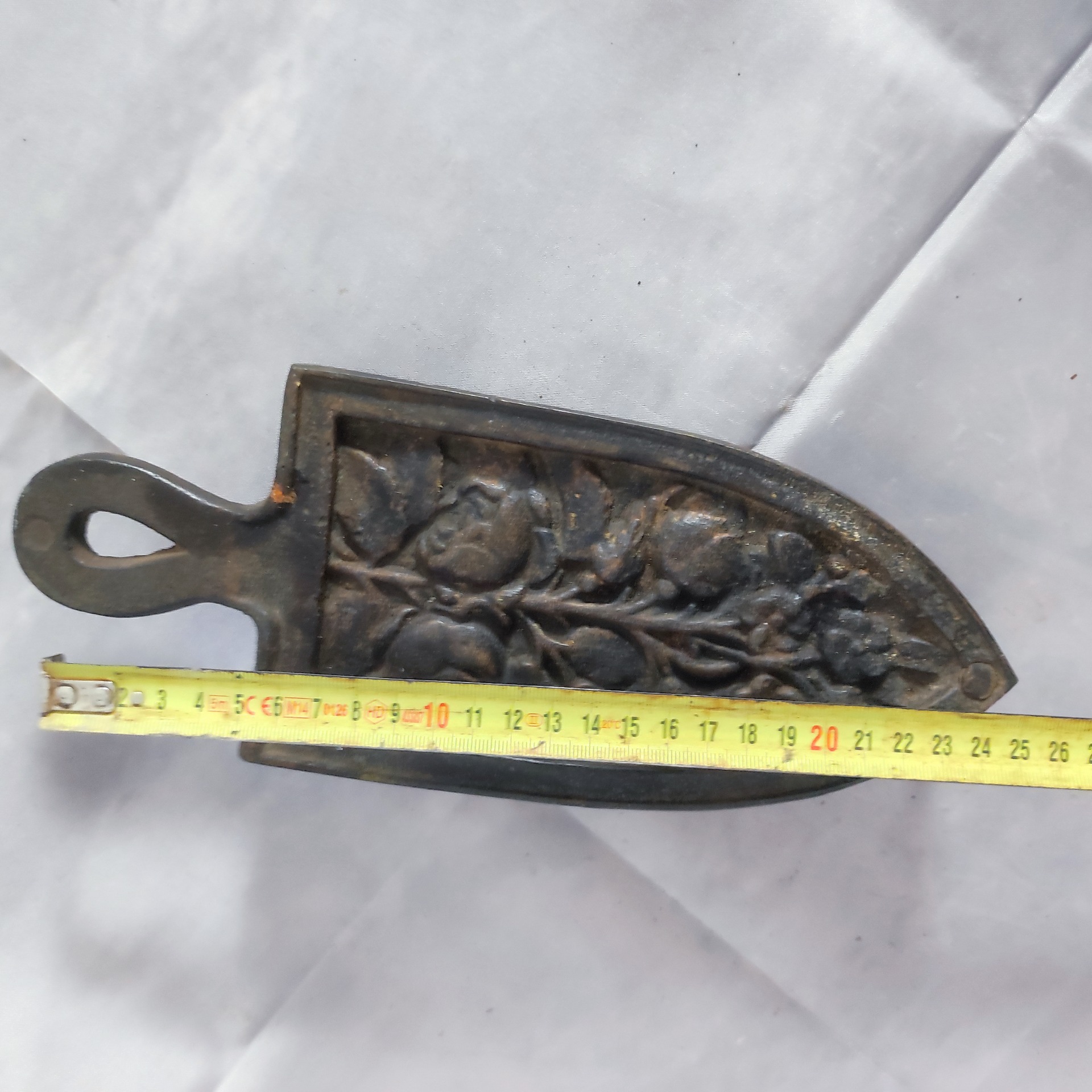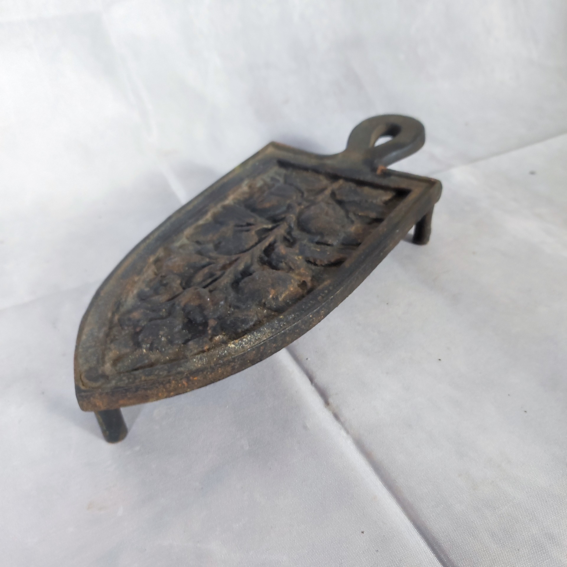 Originální litinová podložka s reliéfem, drobná koroze a stopy stáří. Žádné praskliny, pevný a stabilní kus. Ideální jako dekorace, stojan pod svíčku nebo doplněk ke staré žehličce.