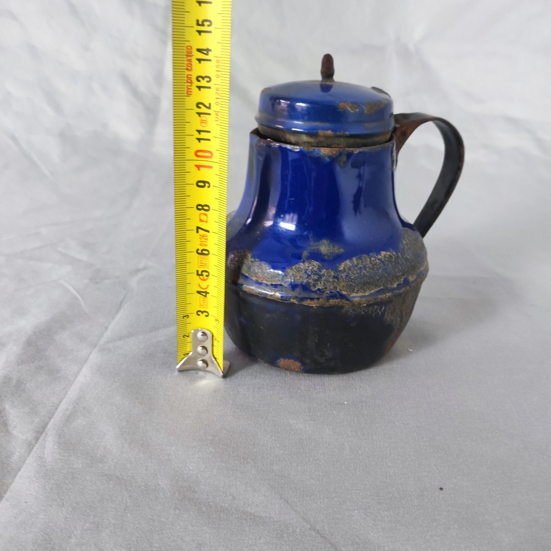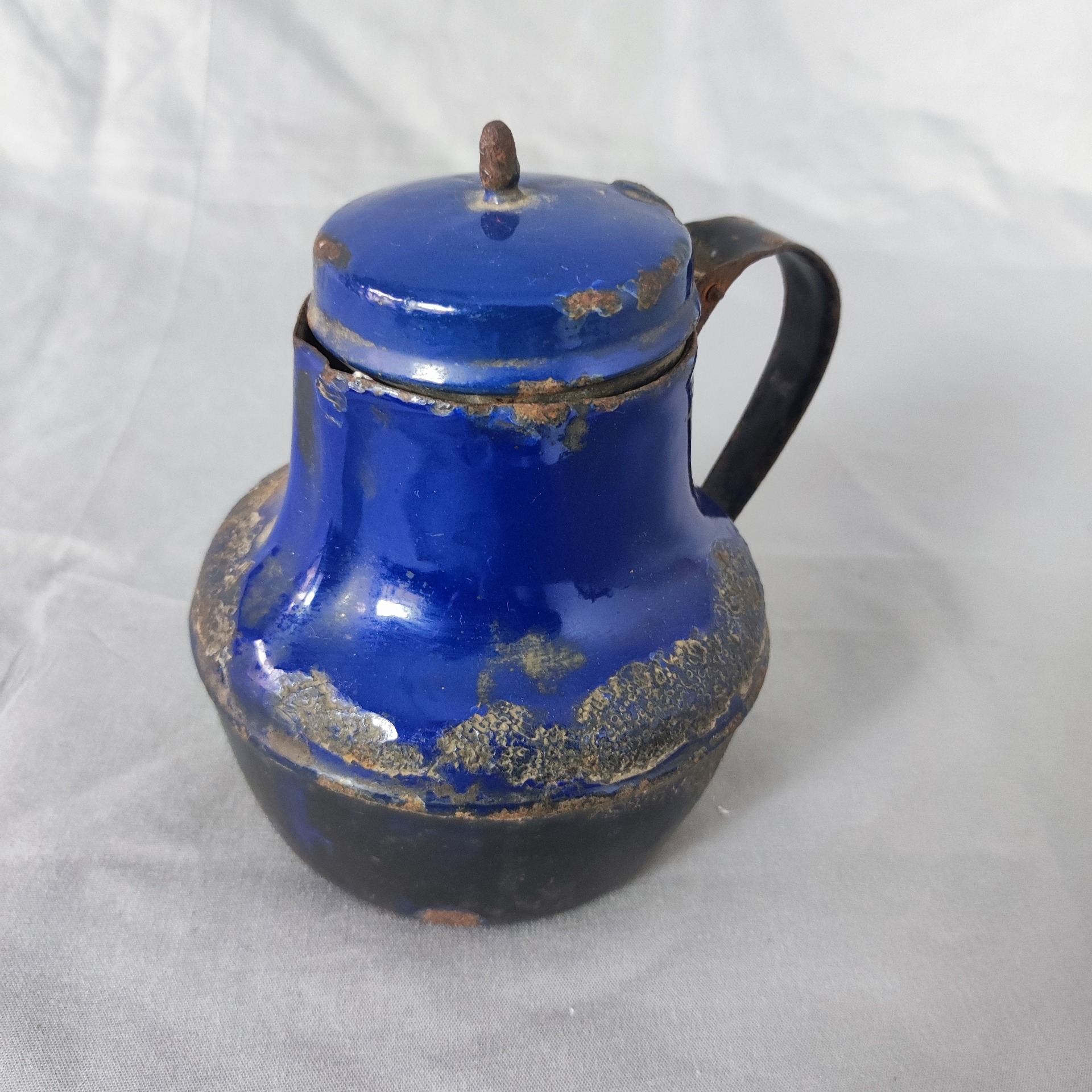 Našla si mě na malém trhu u Lille, mezi rezavými plechovkami a kousky porcelánu. Kobaltově modrá, s víčkem, které drží už jen silou vůle. V téhle konvičce kdysi možná voněla ranní káva, možná se v ní ohřívala voda pro dělníky na stavbě. Smalt má drobné ranky, rez se prokousává podél okrajů, ale barva pořád svítí jako tehdy — hluboká, živá, pravdivá.