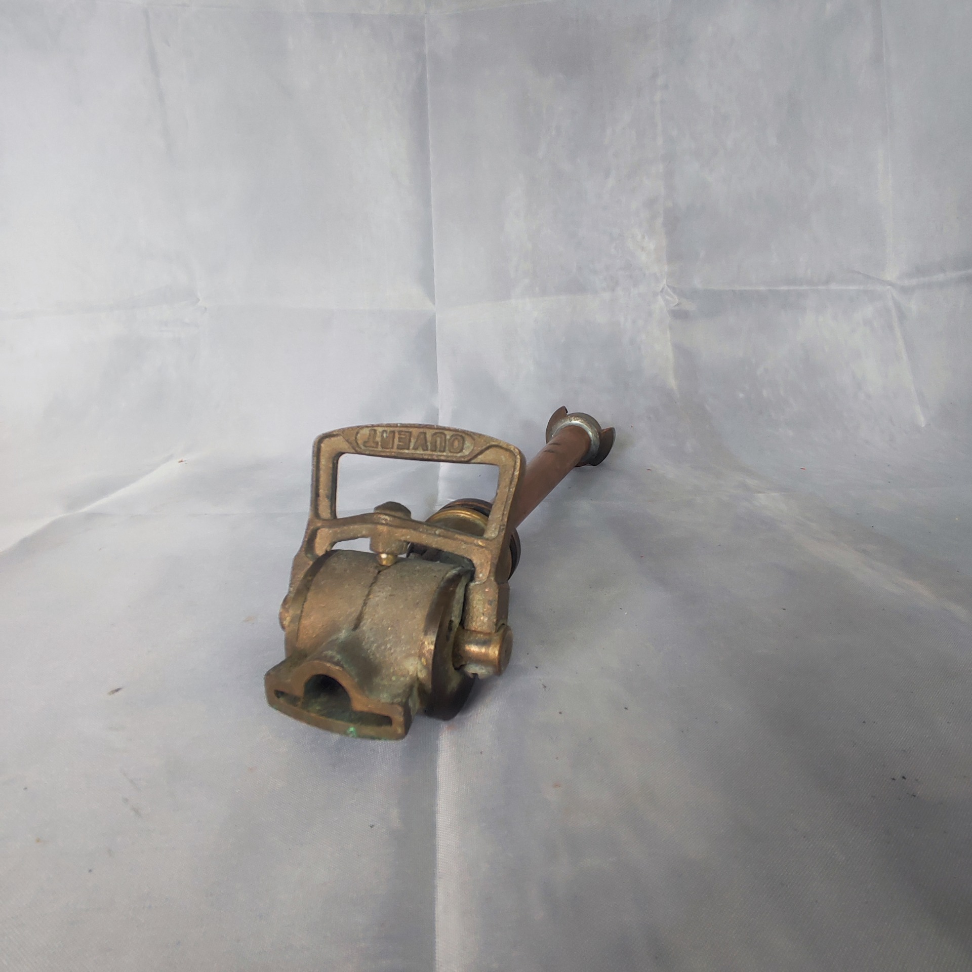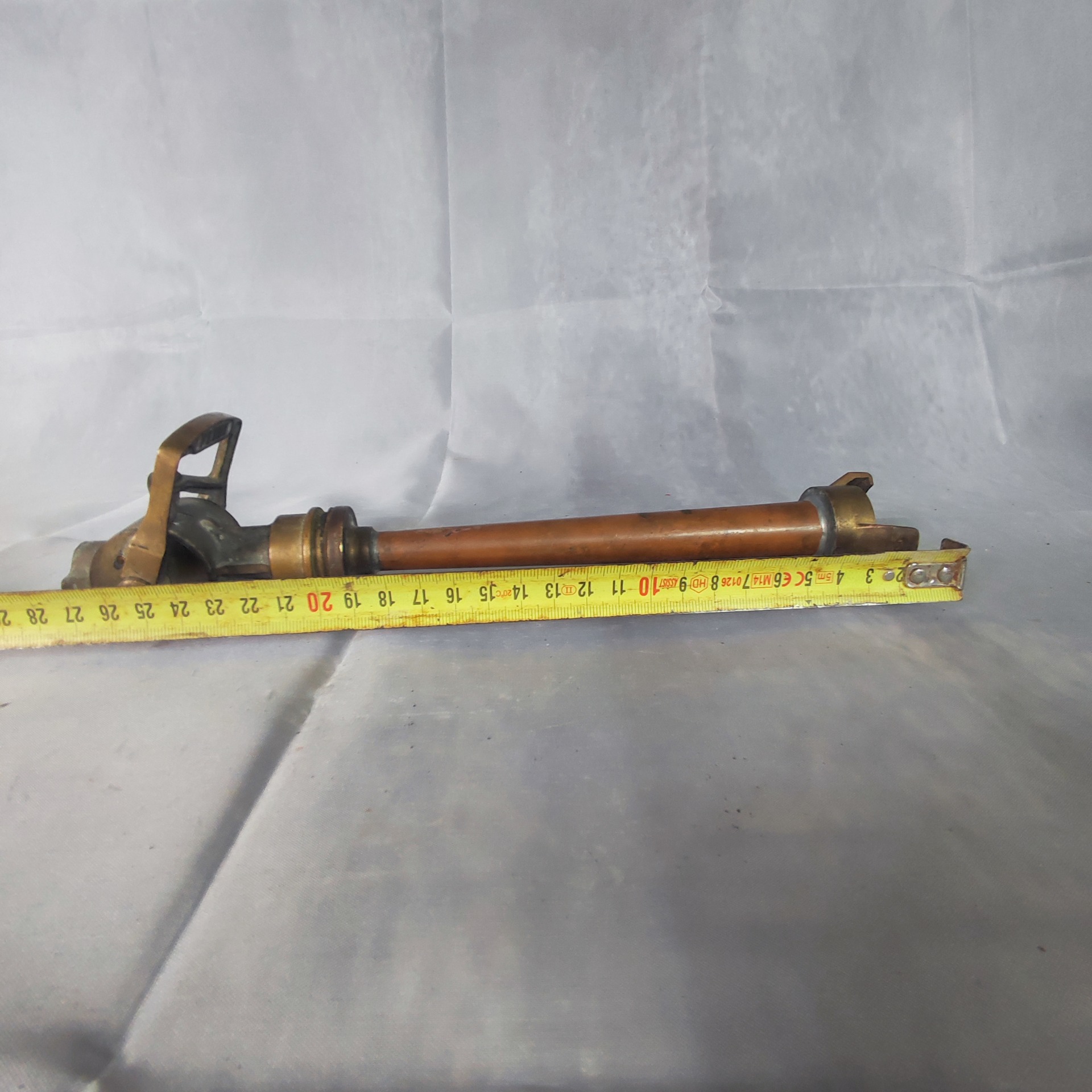 Patina let, zelené mapy po mědi, závit hladký, kloub drží pevně.
