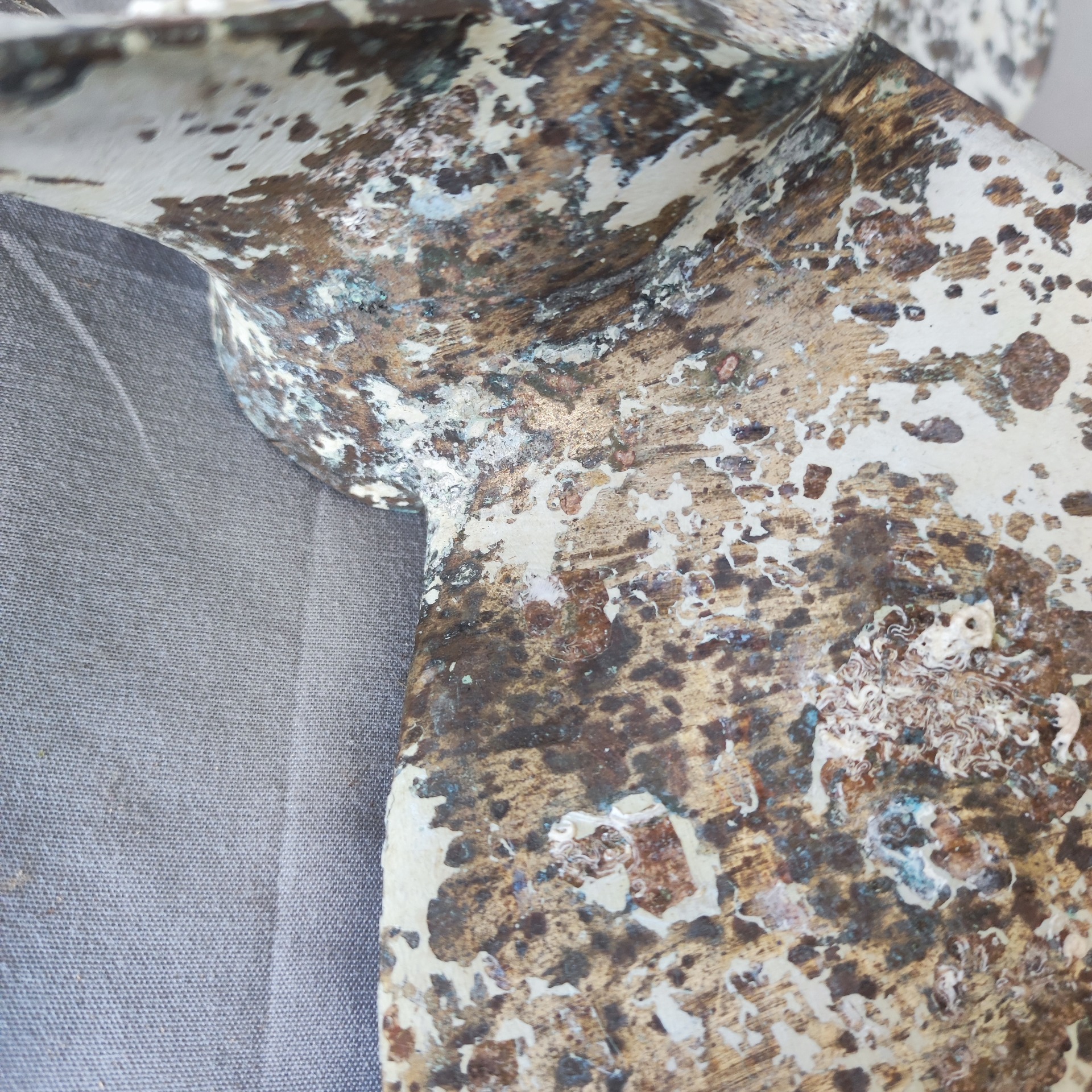 Každé zrnko koroze, každý dotek mořského dna přetvořil kov do živé mapy minulosti.
