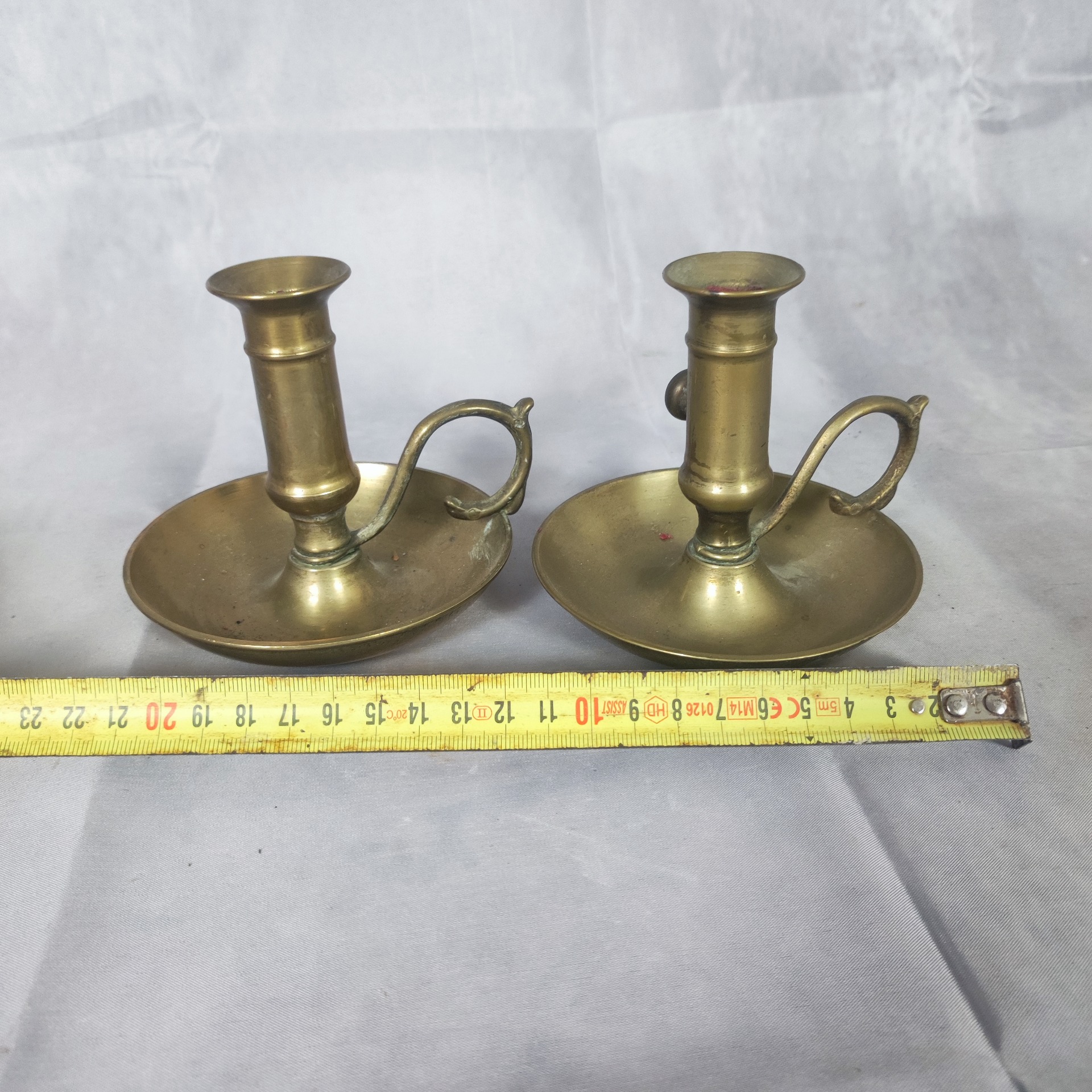 Na stole starého trhovce v belgickém městečku ležely vedle sebe, skoro stejné, ale každý trochu jinak prohnutý v uchu. Dva mosazné svícny, které kdysi osvětlovaly noční pokoj, možná kuchyň po večeři. Tichá světla, co neblikají, jen tiše dýchají voskem. Každý z nich má malý posuvník – ten drobný knoflík, kterým se svíčka zvedala, když zhasla moc brzy. Ručně točená mosaz, pevná, s jemnou patinou let, žádná dekorace z výroby, ale kus, který byl denně v ruce.