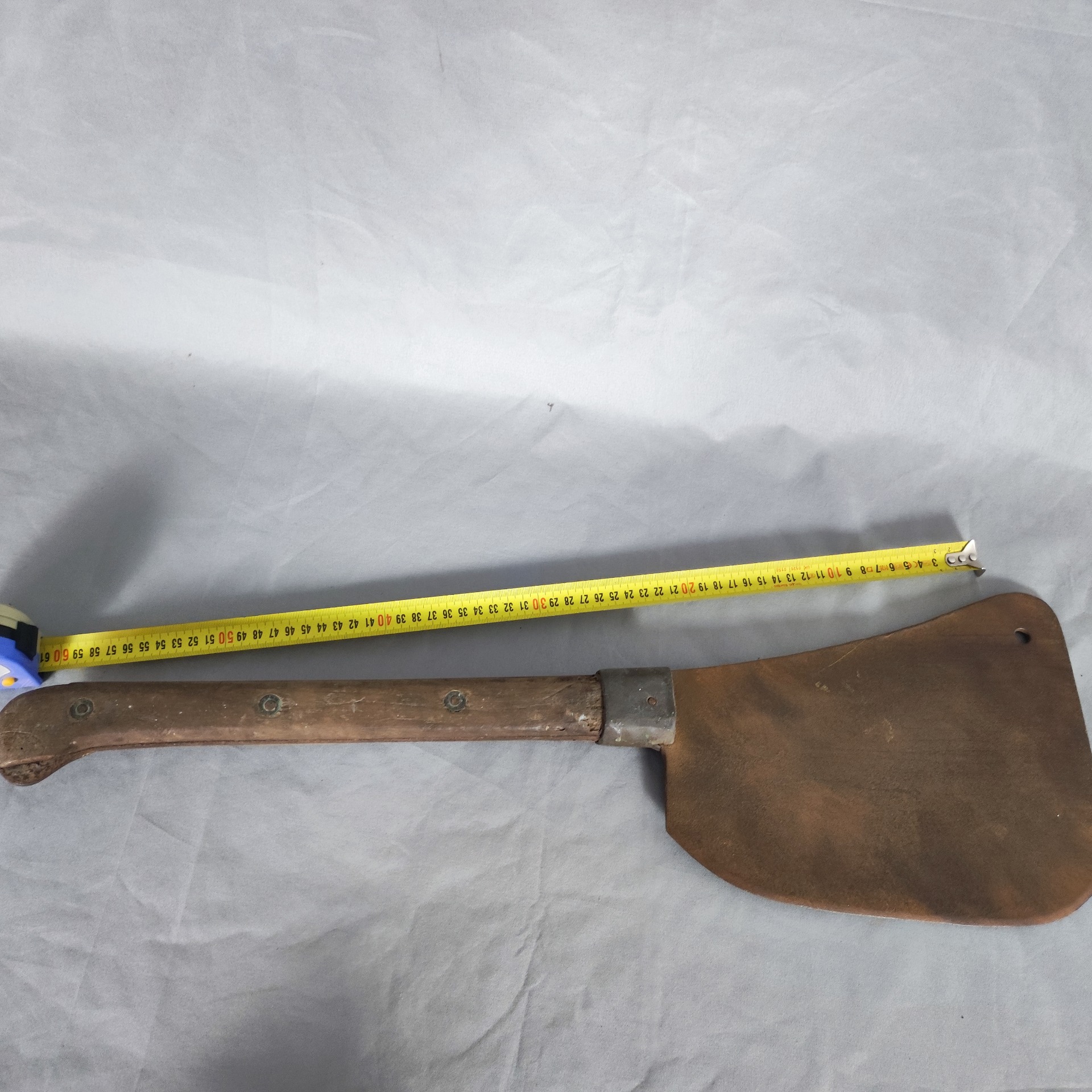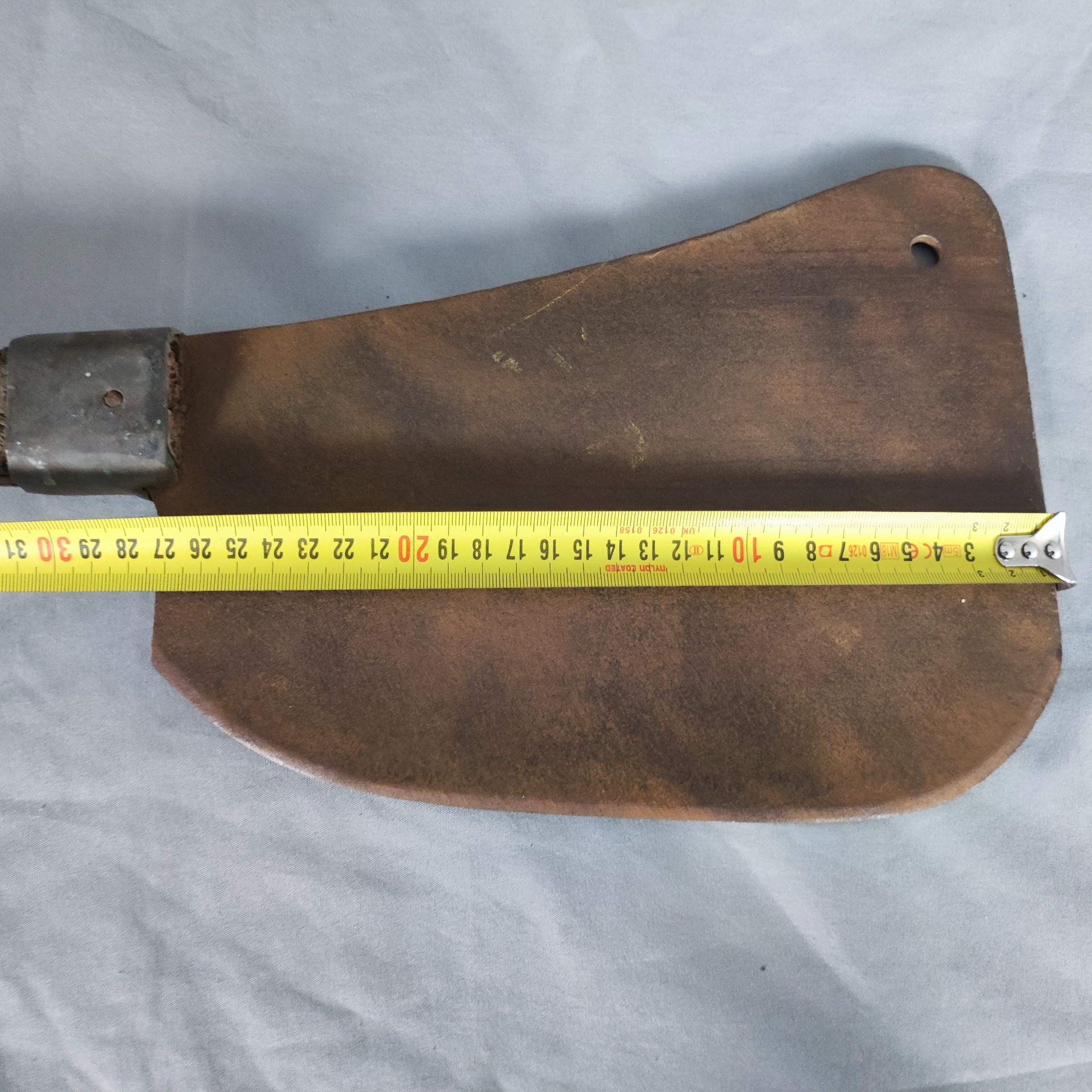 Nástroj je zcela původní, dřevo ohlazené dlouhým používáním, kovová část nese patinu, ale je pevná a drží. Jednoduché, silné, bez oprav. Všechno na něm je pravdivé — přesně tak, jak byl nalezen na trhu za deště.