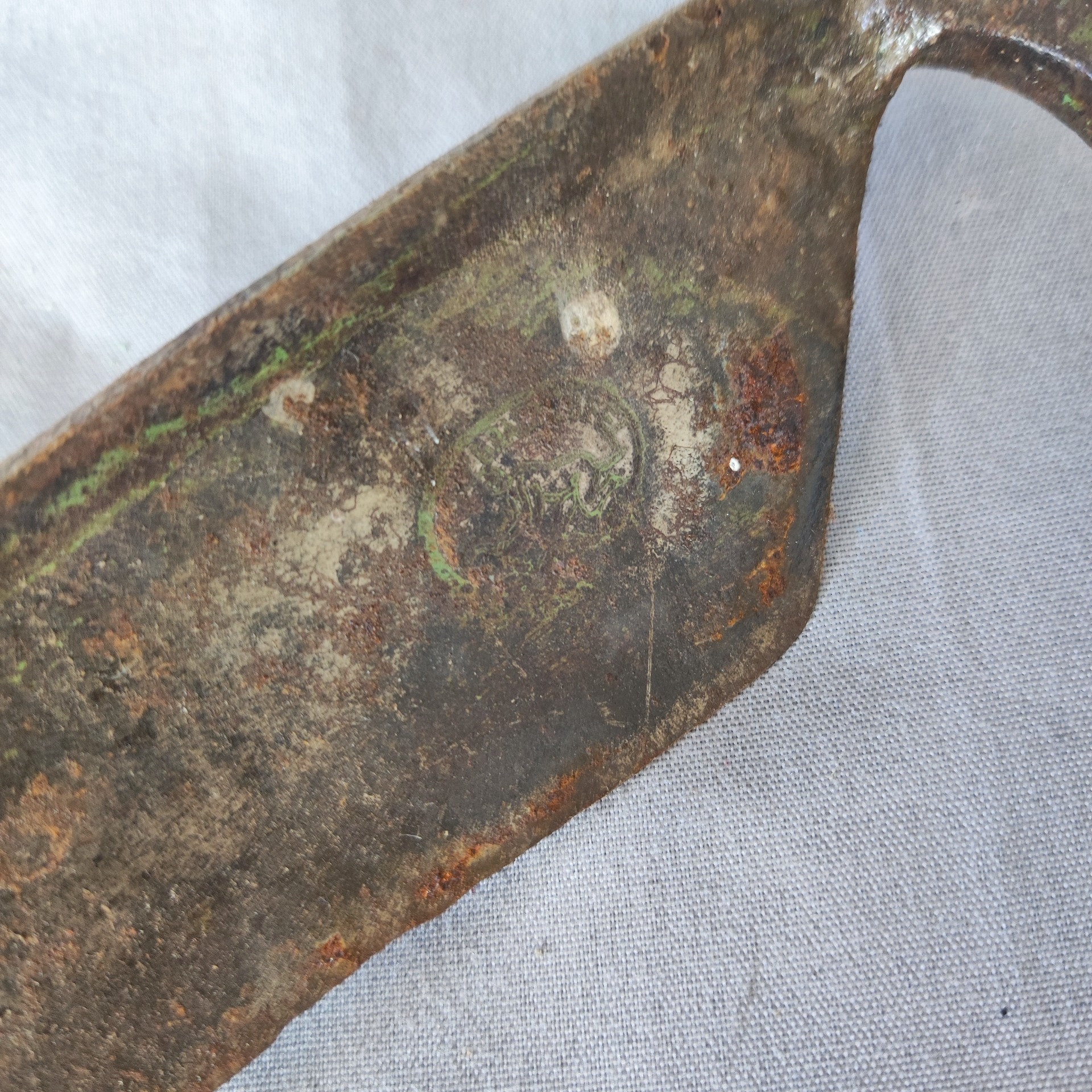 Na čepeli stopa času, lehká rez a zbytky starého nátěru, rukojeť pevná a původní.