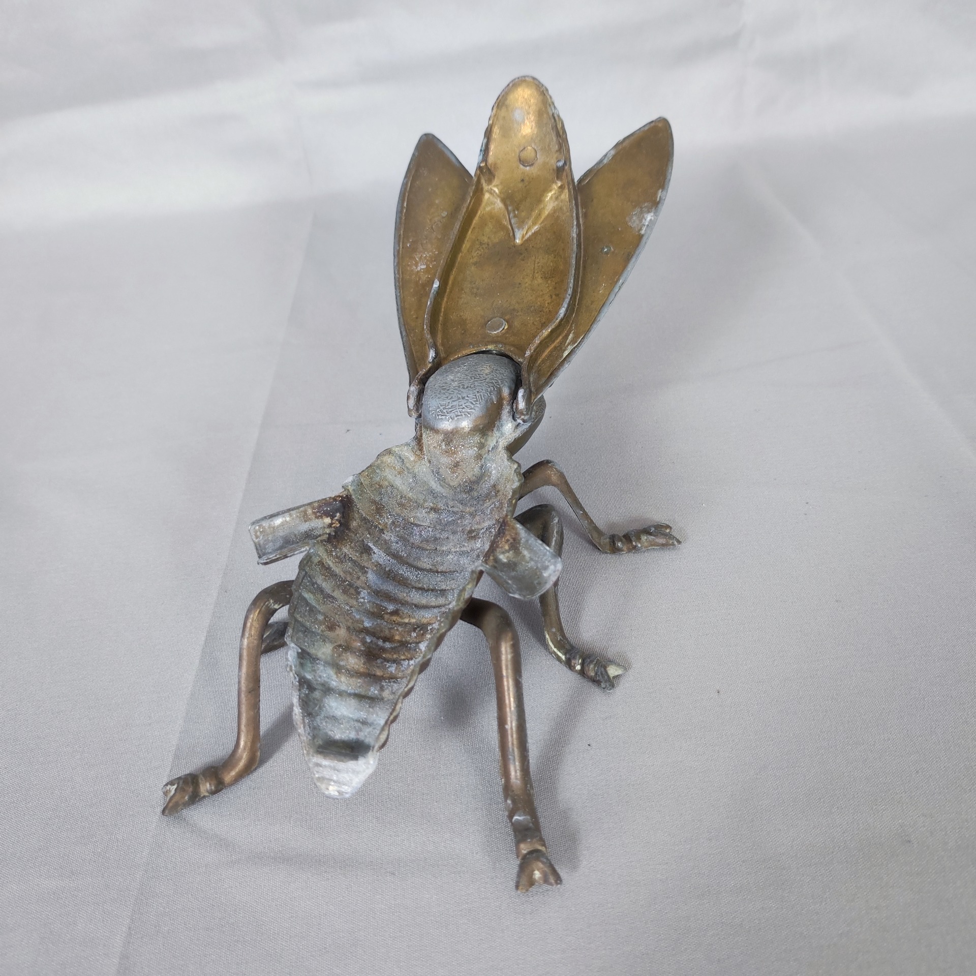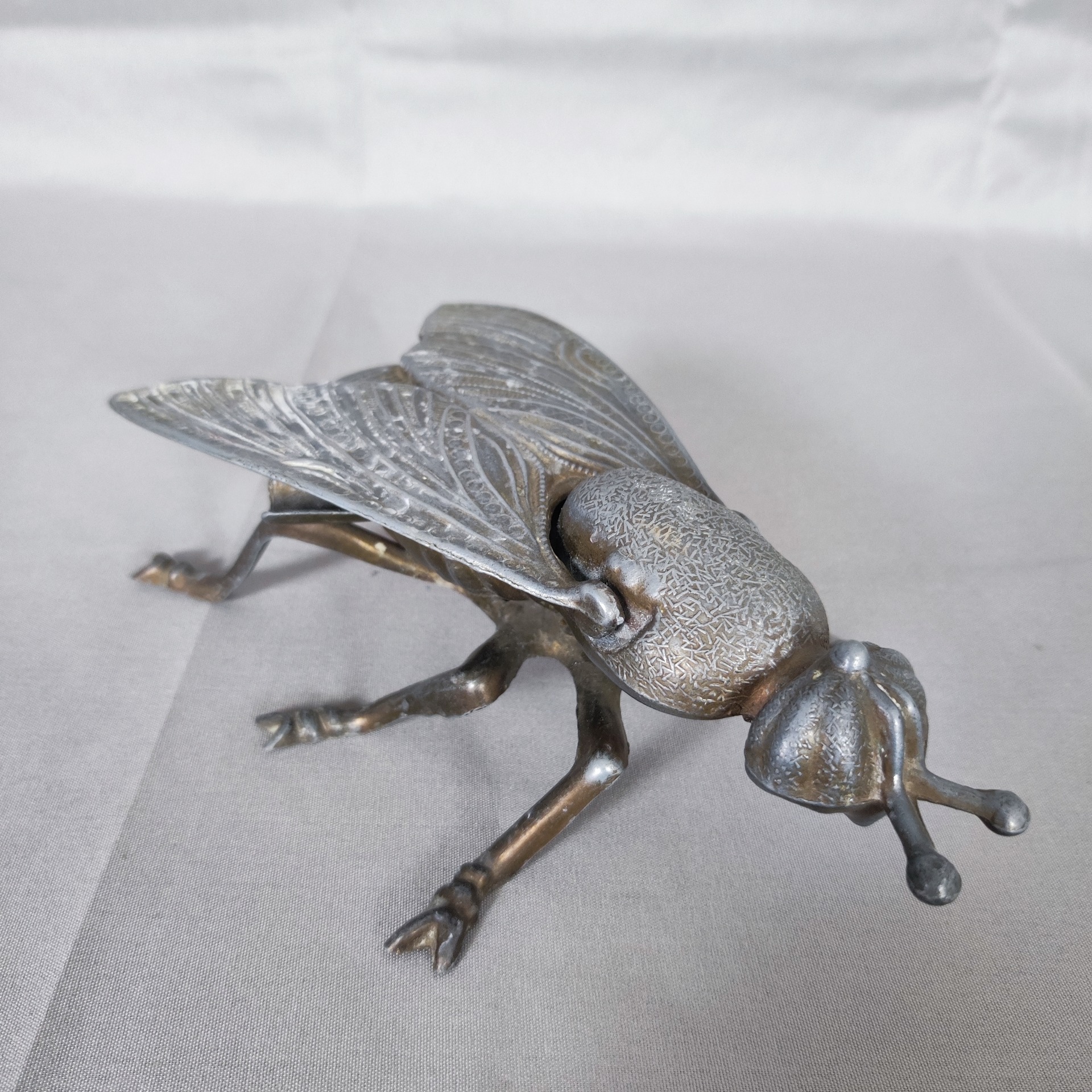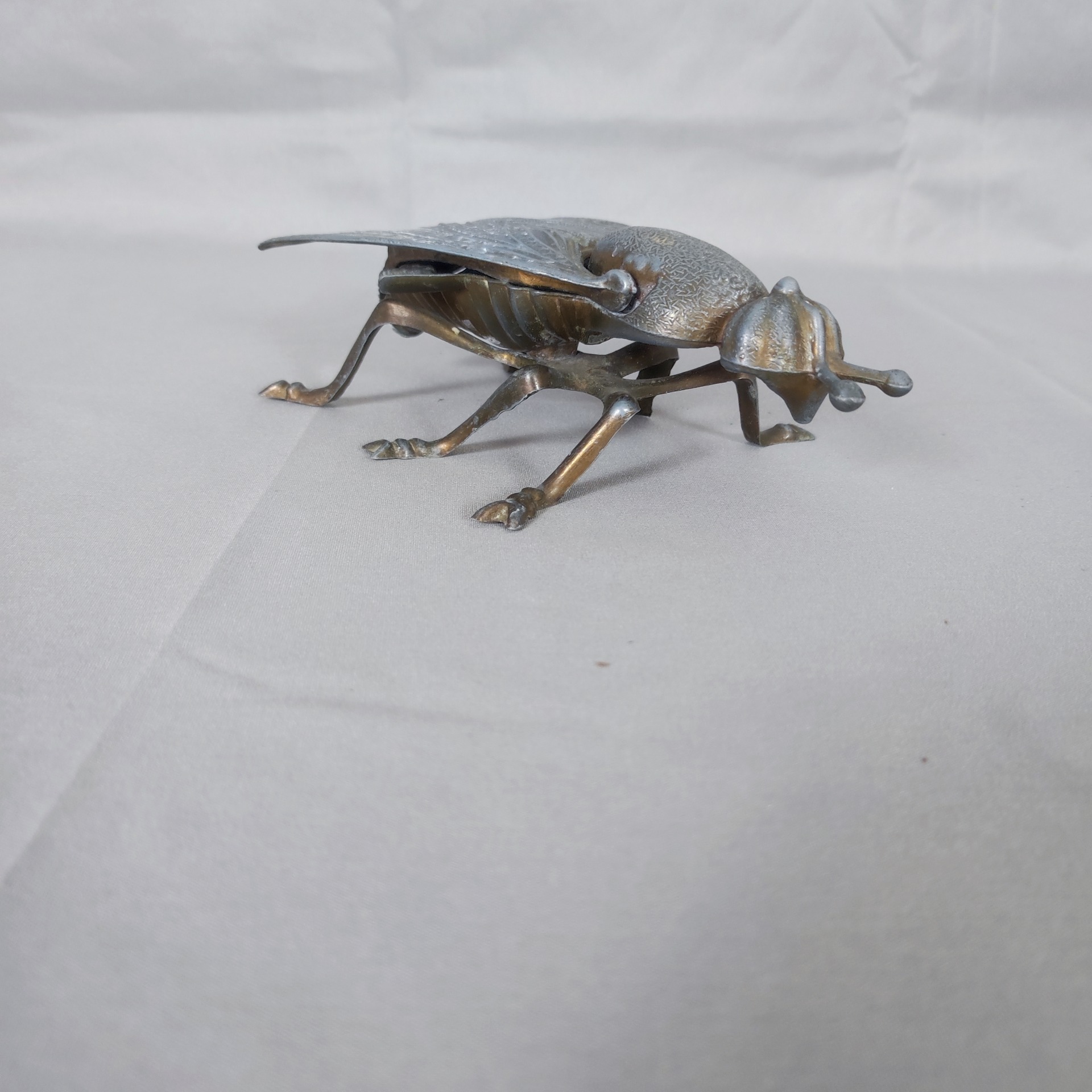 Starý litinový popelník ve tvaru mouchy. Když se zvednou křídla, ukáže se prostor na popel – drobnost, co ležela na stolech kaváren, hospod a dílen po celé Francii.