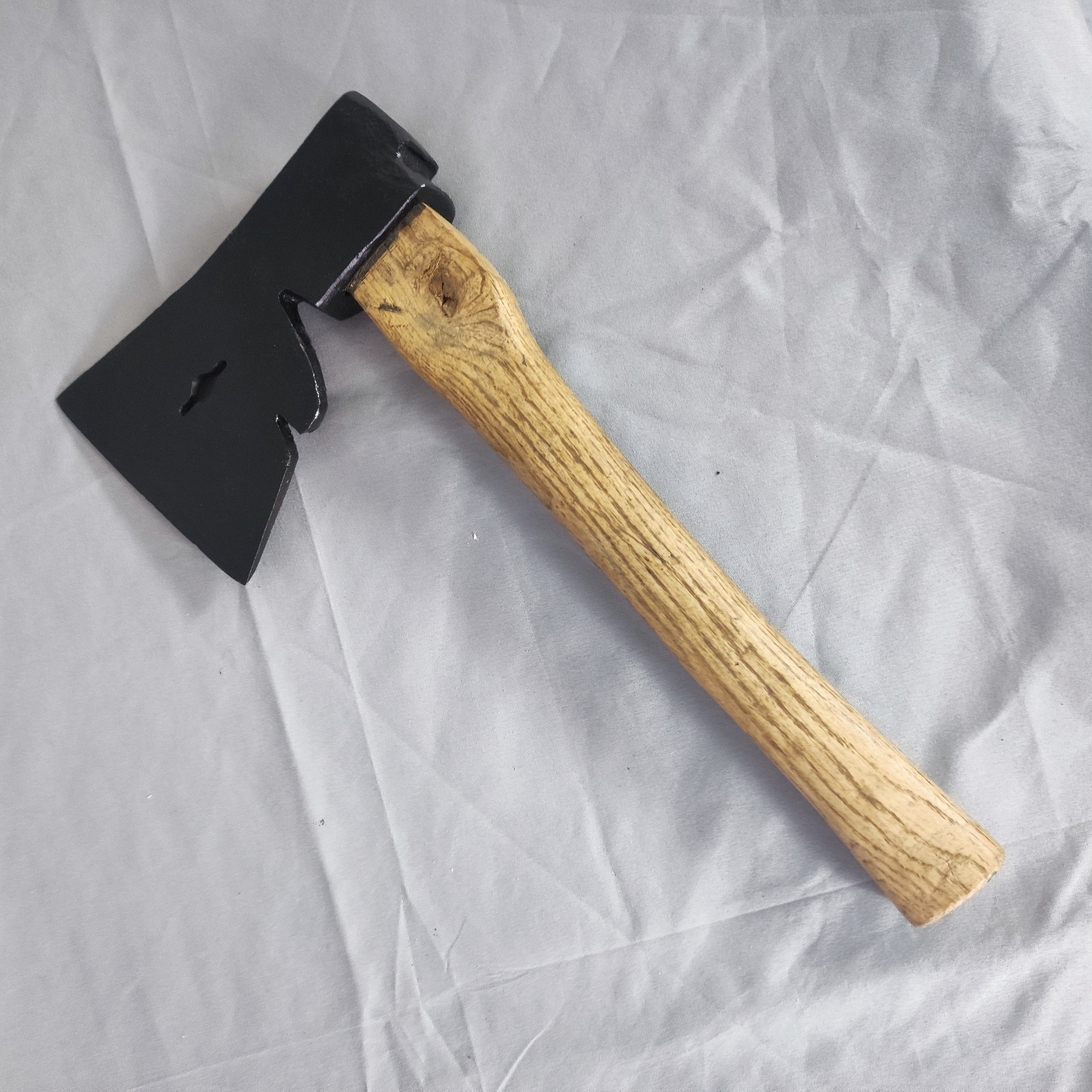 Funkční, pevná, připravená k práci nebo jako krásný industriální doplněk. Ostří chráněné, ocel bez prasklin, dřevo zdravé a čisté.