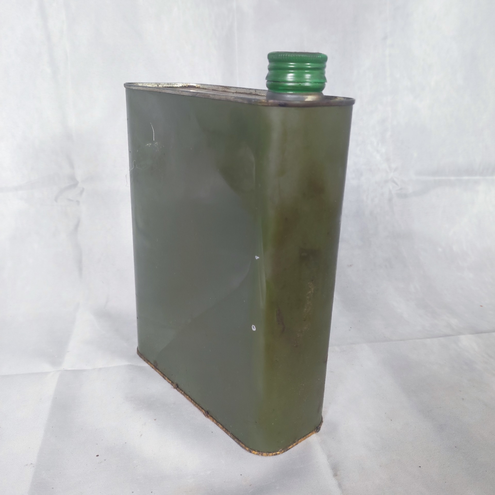 Plech v původním vojenském nátěru, kompletní se šroubovacím víčkem. Drobná patina času, místy lehké škrábance, bez děr a průsaků.